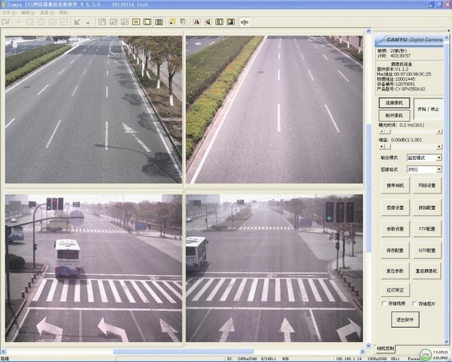 二期室外设备包括四个高清摄像头,分别监控沪城环路和古总路交叉口北进口、北出口的交通量和车速。利用太阳能发电,和无线传输技术将视频传回实验室服务器,由服务器经过计算得出监控数据。