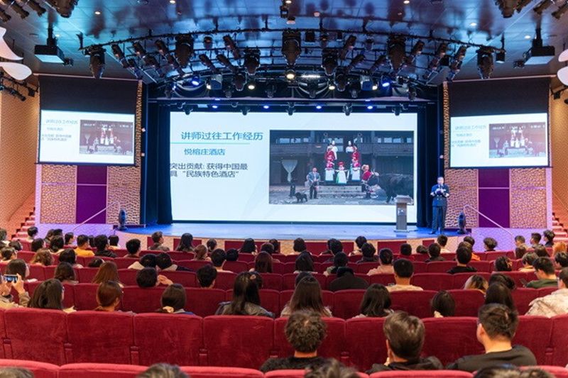 知识领航,拓宽职业认知。在实习期间,爱达・魔都号酒店副总监胡东峰先生以《职业经理人的成长之路》为题,结合自身丰富的职业生涯,深入浅出地为同学们剖析邮轮酒店行业的管理逻辑。从团队组建与管理,到服务质量的把控,再到应对复杂客户需求的策略,生动案例的分享让同学们对邮轮酒店运营管理有了更直观、深入的理解,帮助同学们把控未来的职业方向。爱达・魔都号人力资源总监则带来《To the Future/向未来》的主题讲座,系统讲解邮轮运营架构,从甲板部、轮机部到酒店服务部门,各部门间的协同运作一目了然。同时,详细阐述服务标准与国际礼仪规范,无论是船员的着装仪态,还是与乘客交流的话术技巧,都进行了细致入微的讲解,助力同学们拓宽行业视野,为未来有志于投身邮轮航运相关行业筑牢知识根基。